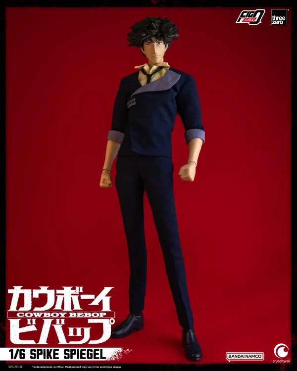 FigZero 1/6 Spike Spiegel collectible figure is approximately 12.2” (30.8cm) tall featuring a unique custom body with approximately 32 points of articulation to capture the character’s lean build, attitude, and expressiveness. Made from ABS, PVC, POM, and fabric materials, this figure boasts a detailed head sculpt and finely-tailored outfit that perfectly captures Spike’s signature style from the beloved Cowboy Bebop anime series.