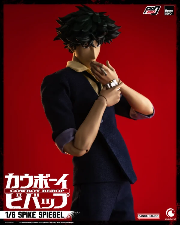 Spike Spiegel, former member of the Red Dragon Syndicate who has gone rogue bounty hunter travelling on the spaceship Bebop, is brought to life as a FigZero 1/6 figure. This highly detailed figure features Spike’s iconic costume, including fabric shirt and tie, blazer, and slacks, as well as a pair of sculpted boots with ankle joints to ensure maximum poseability. In addition, the figure includes a range of accessories that fans of the show will recognize from iconic scenes, such as a bent cigarette and lighter, Spike’s iconic pistols, a shotgun, and transaction machine with card.