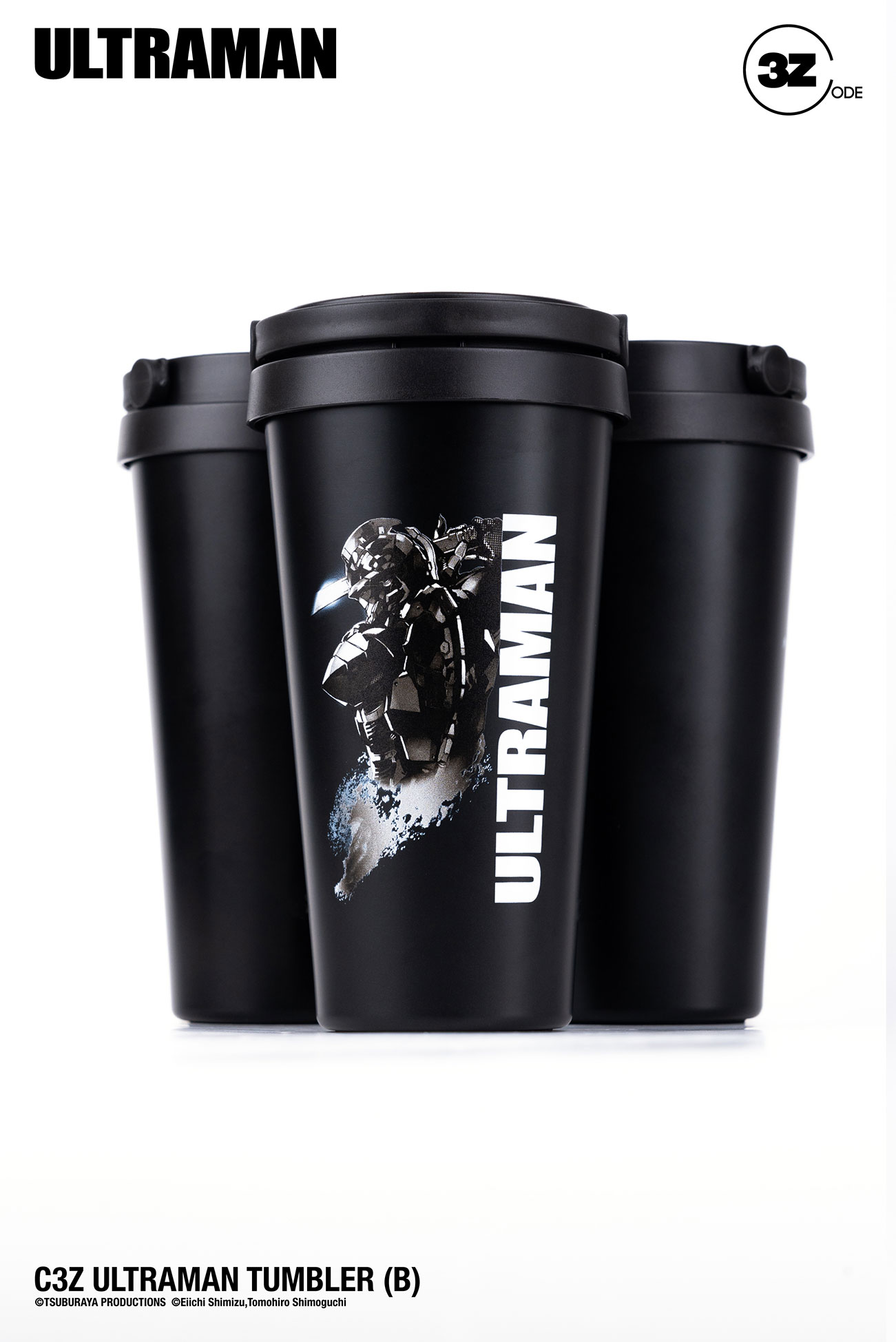 Code_threezero機動奧特曼系列保溫杯擁有沉實的啞光黑色外型,(B)款更印有型格機動奧特曼裝甲 Ver7。