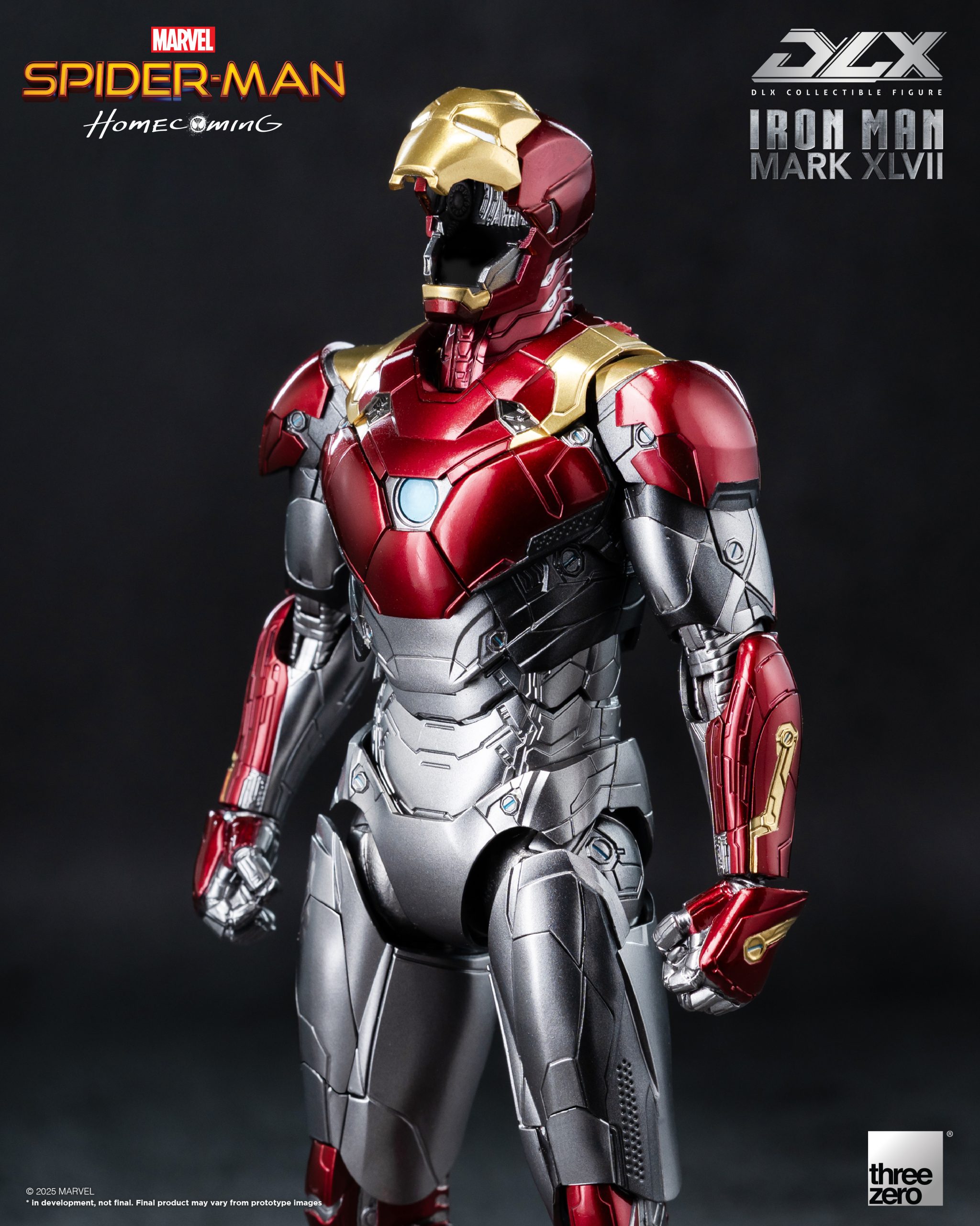 DLX 鋼鐵俠Mark 47高約6.9英寸 (約17.5厘米),擁有約48個可動關節,內藏合金骨架。結構設計精妙,部件精緻,能在極致還原各種動作姿勢的同時保持逼真的外觀。眼部及胸部皆搭載有LED發光功能,背面的4塊鑲板可以像機翼般翻轉打開和關閉。